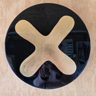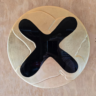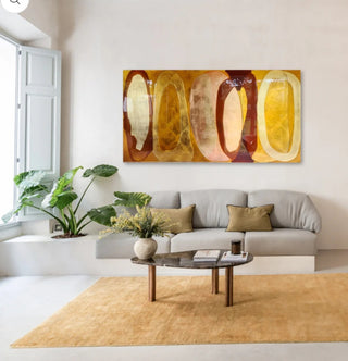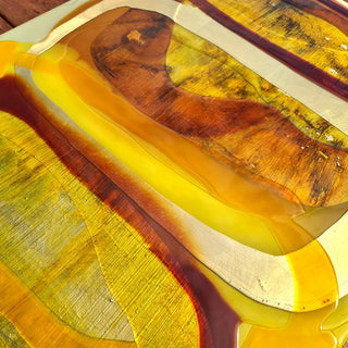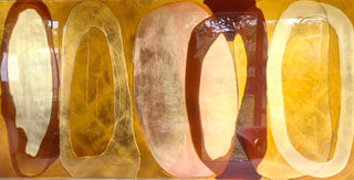 creates beautiful lustrous large scale abstract art with liquid resin, gold leaf and inks.