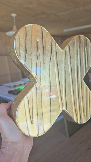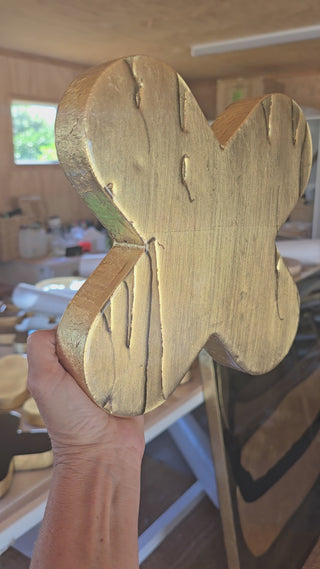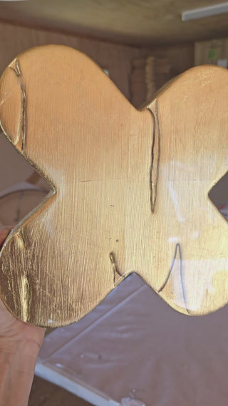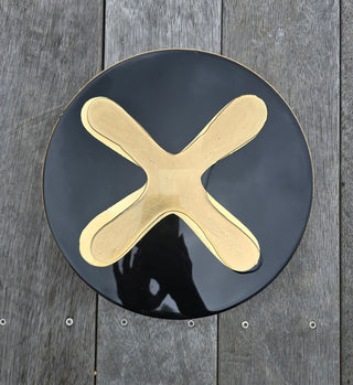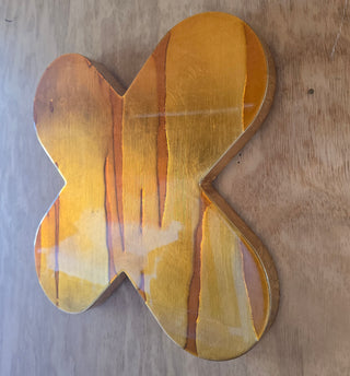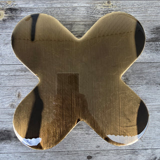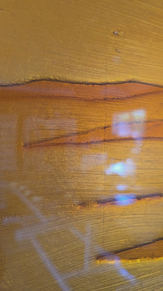 creates beautiful lustrous large scale abstract art with liquid resin, gold leaf and inks.