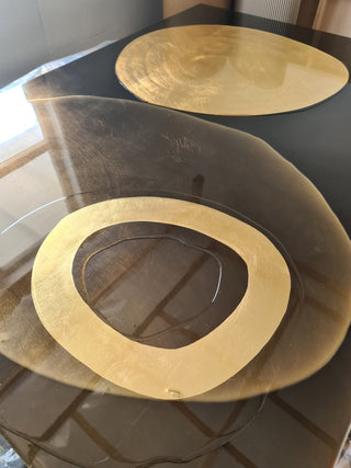 "West approaches painting with a contemporary attitude. Her method is free from traditional oil or acrylic paints, even departs from the use of brushes, palettes and easels. Instead, West takes to her work with free pouring techniques, layering resin over gold leaf to create sensuous and fluid pieces.The word that comes to mind when viewing West's work is FLOW. Her compositions feel like they are still in motion, flowing and fleeting. This term is also used in psychology to describe a state of being 'in the zone' . That feeling of complete immersion in an activity, with an energized focus. After some 6 years of working with resin Rae now certainly works with a sense of flow.2020 will see West embark on a new series of work. The new series will use multiple layers of hazy resin to create a sense of movement that stretches into the distance. These works a reminiscent of looking into the fluxing movements of water and smokey light. The richness of these pieces is aided by the light that comes from the base layer of gold leaf, and also the natural light that bounces off the the resin surface. The results are deep radient images"