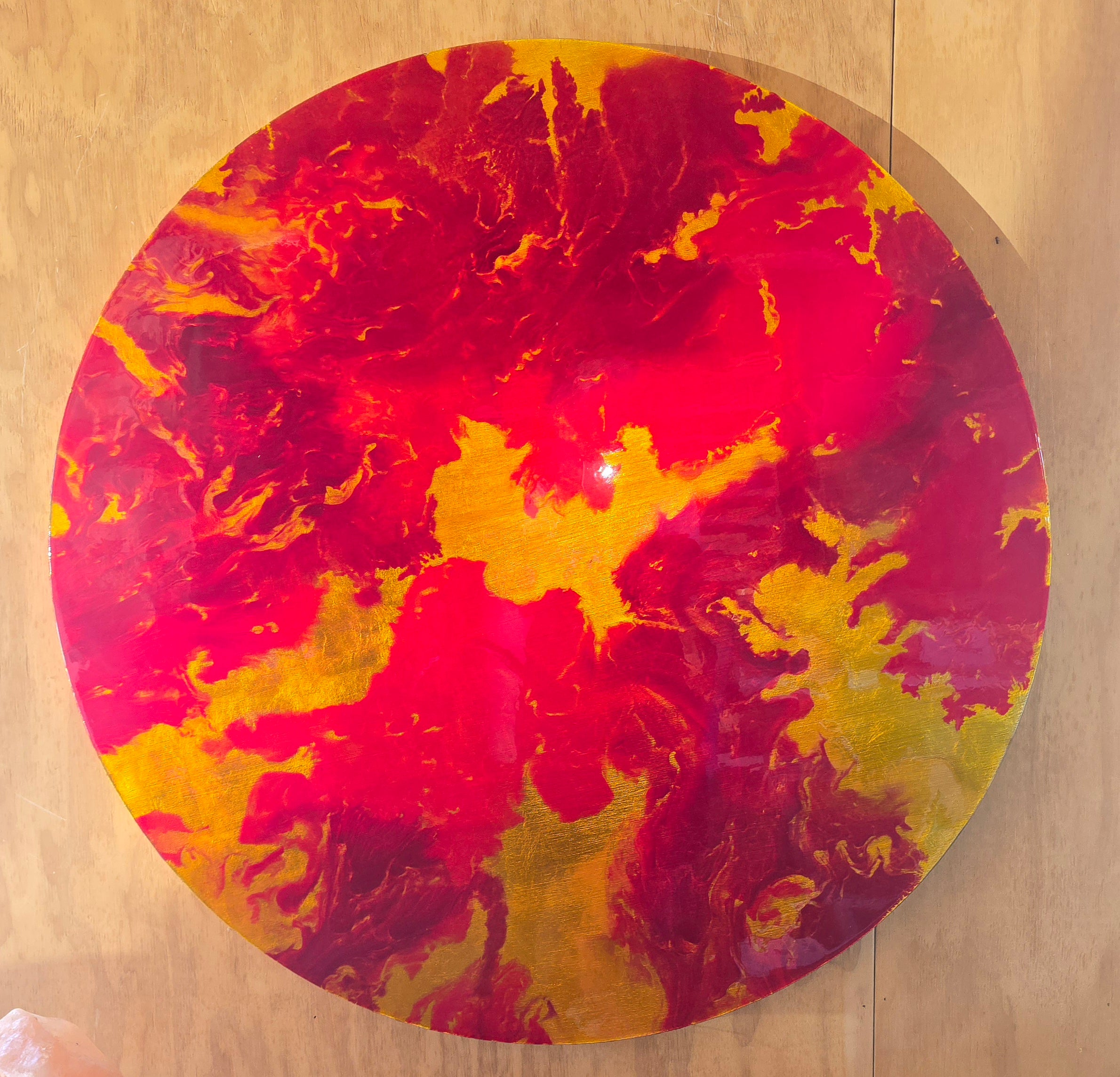 Her works pulse with the kinetic freedom of fluidity and light. She uses multiple veils of pigment, resin and ink, which blend and react against each other creating beautiful forms and textures. The end result is spontaneous, subconscious, and sensual.