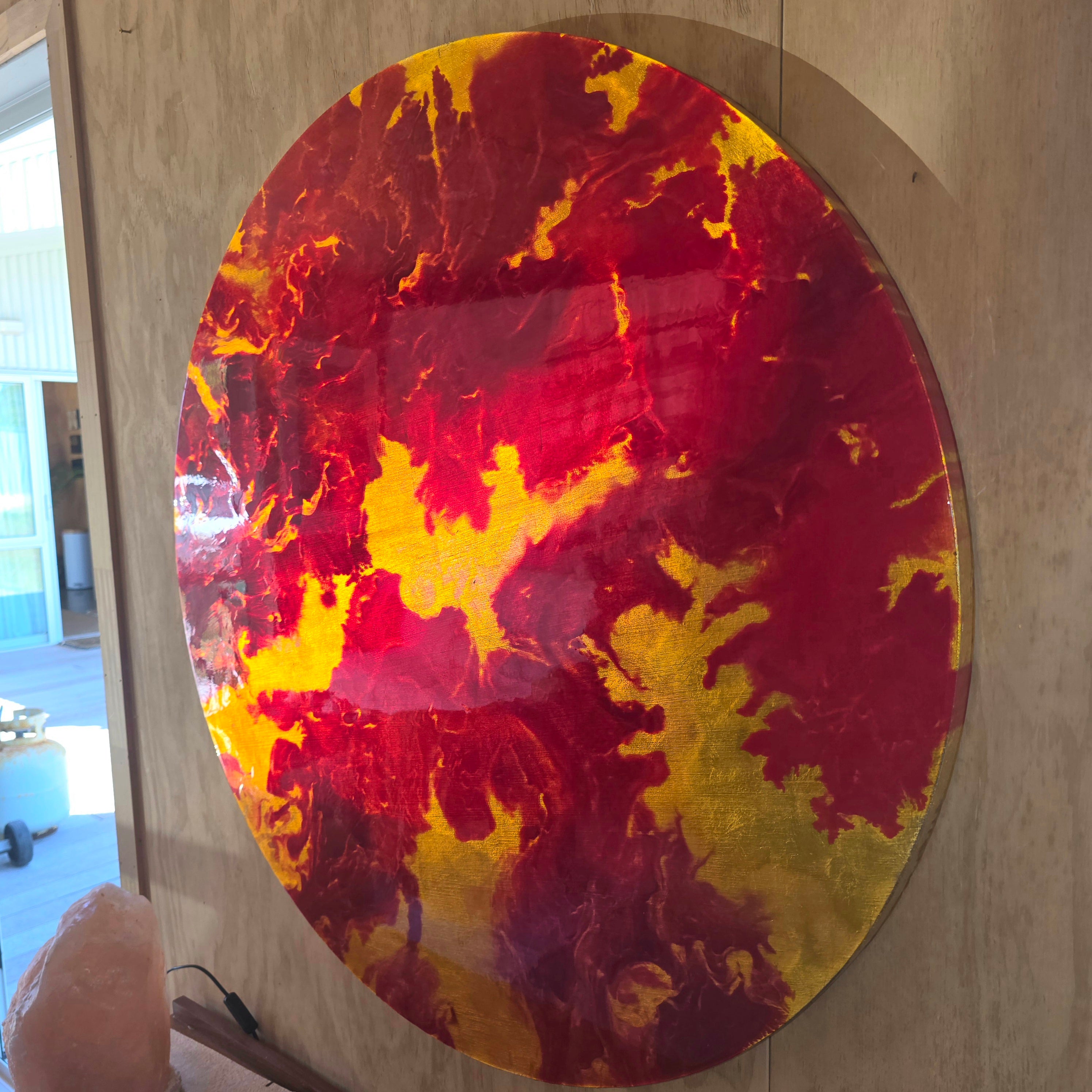 BURNING DESIRE is an original artwork by Rae West. Made with layers of gold leaf and inky resin. 1m wide.